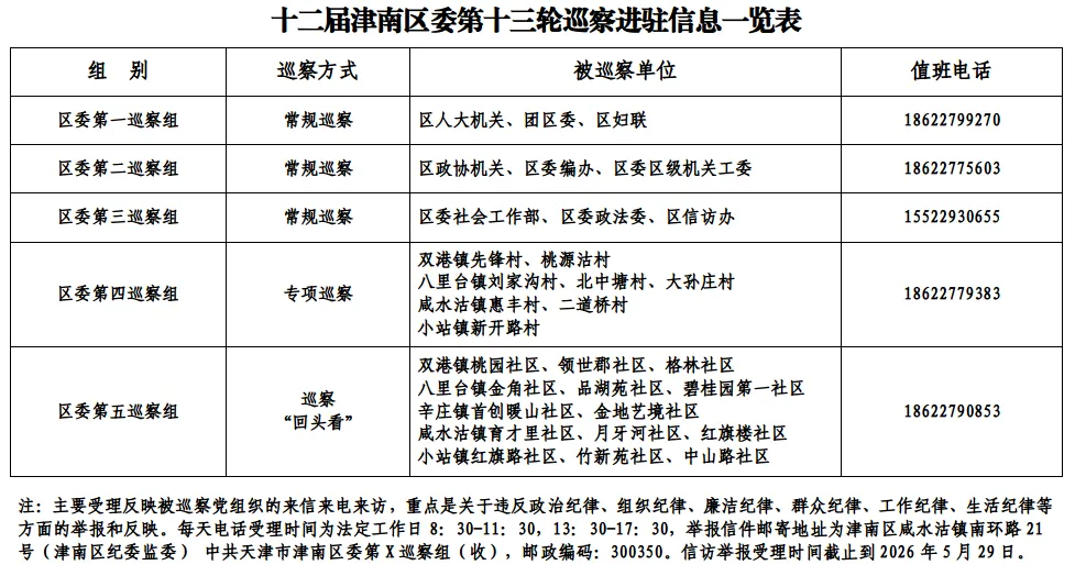 区委巡察组现场巡察时间为60天,期间设立值班电话、邮政信箱和“码上巡”二维码,主要受理反映被巡察党组织的来电来信来访,现将有关信息公布如下。
