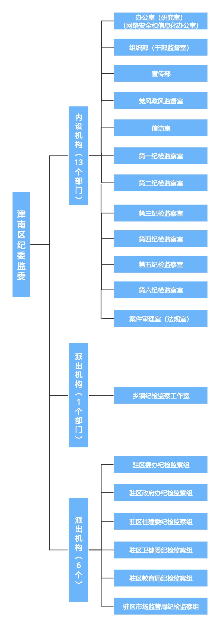 组织部(干部监督室):负责全区纪检监察系统领导班子建设、干部队伍建设和组织建设的综合规划、政策研究、制度建设和业务指导;承办基层纪(工)委书记、副书记,监察组组长、副组长的提名、考察,基层纪(工)委书记、副书记,监察组长、副组长人选意见回复等工作;组织和指导纪检监察系统干部教育培训、人才队伍建设工作;协调办理区管干部任职前回复区委组织部意见工作;负责监督检查全区纪检监察系统干部遵守和执行党的章程和其他党内法规,遵守和执行党的路线方针政策和决议、国家法律法规等方面的情况;牵头离退休干部工作;受理区纪委监委干部(不含纪委书记、副书记,监委主任、副主任);区委巡察机构干部;基层纪(工)委书记、副书记,监察组组长、副组长,涉嫌违反党纪、职务违法和职务犯罪等问题的举报,提出处置意见并负责问题线索初步核实及立案审查调查工作等。
