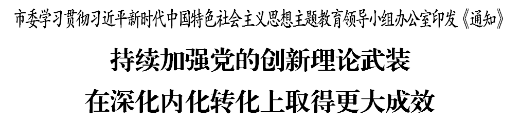 日前,市委学习贯彻习近平新时代中国特色社会主义思想主题教育领导小组办公室印发《关于持续用力强化党的创新理论武装把学习贯彻习近平新时代中国特色社会主义思想不断引向深入的通知》,要求各级党组织和广大党员干部要把加强党的创新理论武装作为首要任务,贯穿全程、持续推进,在深化、内化、转化上不断取得更大成效。