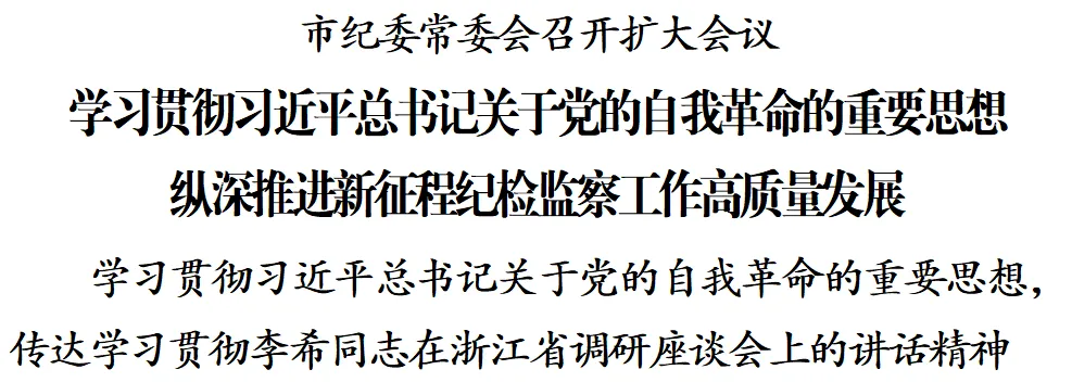 日前,市纪委常委会召开扩大会议,学习贯彻习近平总书记关于党的自我革命的重要思想,传达学习李希同志在浙江省调研座谈会上的讲话精神,研究贯彻落实措施。市委常委、市纪委书记、市监委代理主任王庭凯主持会议并讲话。