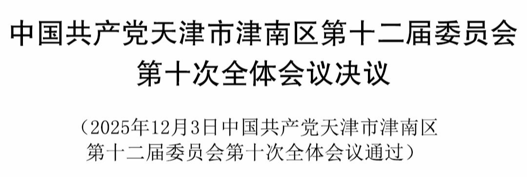 中国共产党天津市津南区第十二届委员会第十次全体会议,于2025年12月3日召开。
