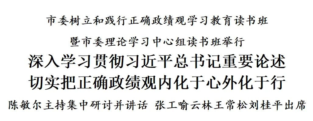 这次读书班安排一天半时间,采取个人自学、集中研讨相结合方式,认真研读《习近平关于树立和践行正确政绩观论述摘编》等学习材料,相互交流学习体会。市委副书记、市长张工,市人大常委会主任喻云林,市政协主席王常松,市委副书记刘桂平和市委常委出席并作交流发言。